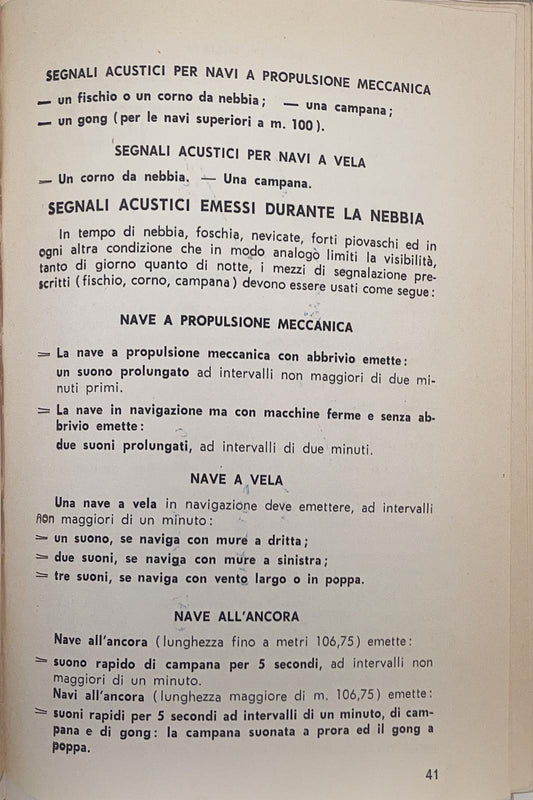 Tabella dei segnali visivi diurni e notturni (COLREG)