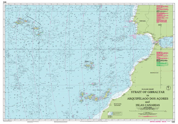 Strait of Gibraltar to Archipélago dos Açores & Islas Canarias passage chart - C20