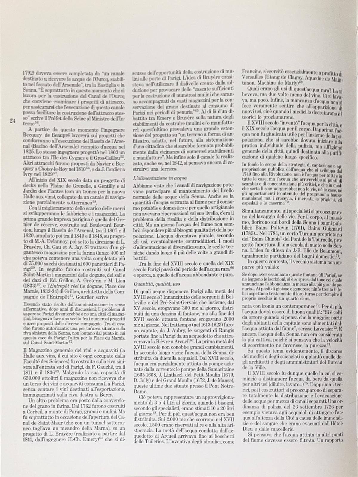 Il volume è una pubblicazione della rivista trimestrale Rassegna. Problemi di Architettura dell'Ambiente. Consiste in un’indagine urbanistica e architettonica sul ruolo dei corsi d’acqua nella configurazione urbana di Parigi, affrontando sia aspetti storici - come i canali - sia potenzialità contemporanee di valorizzazione dei waterfront.