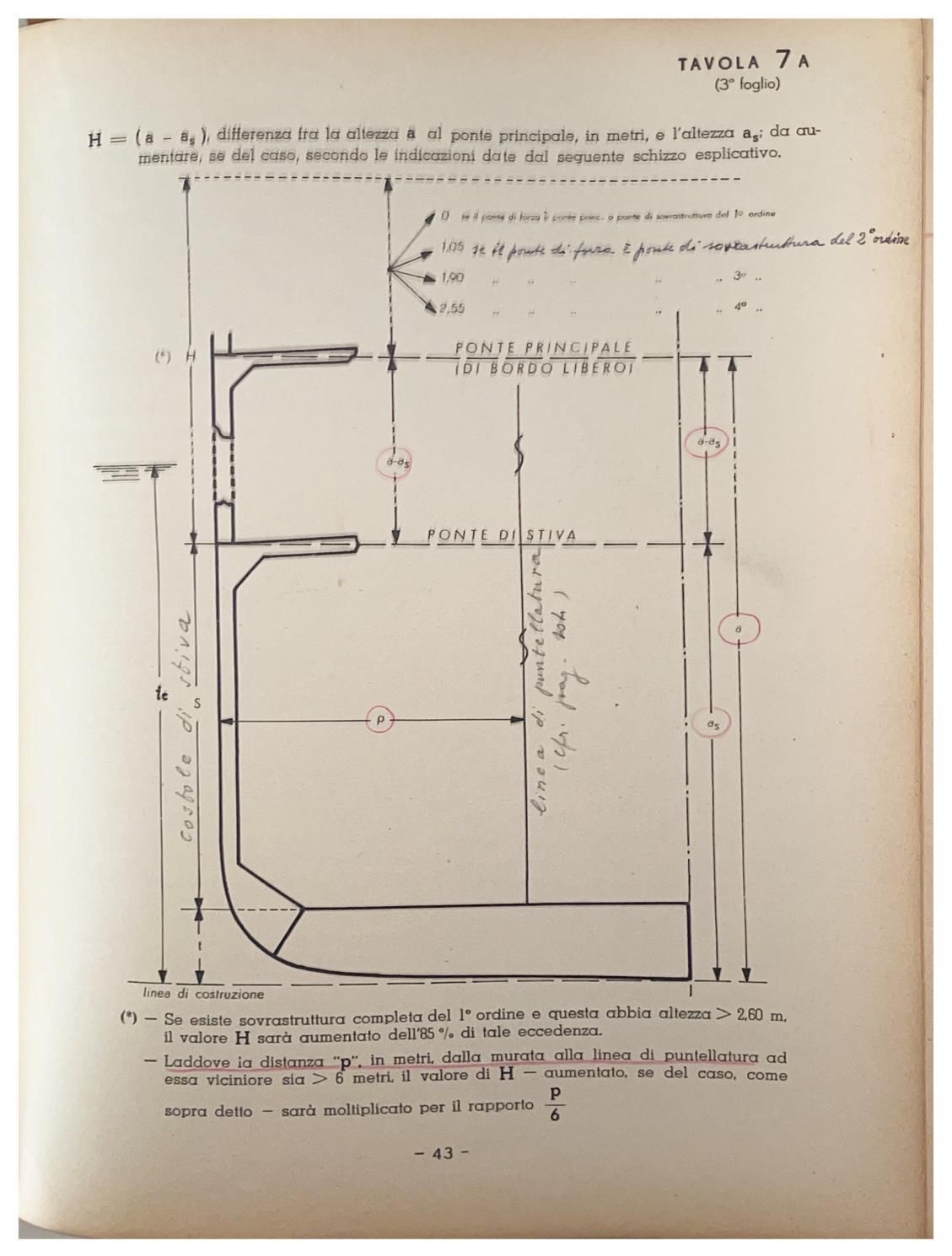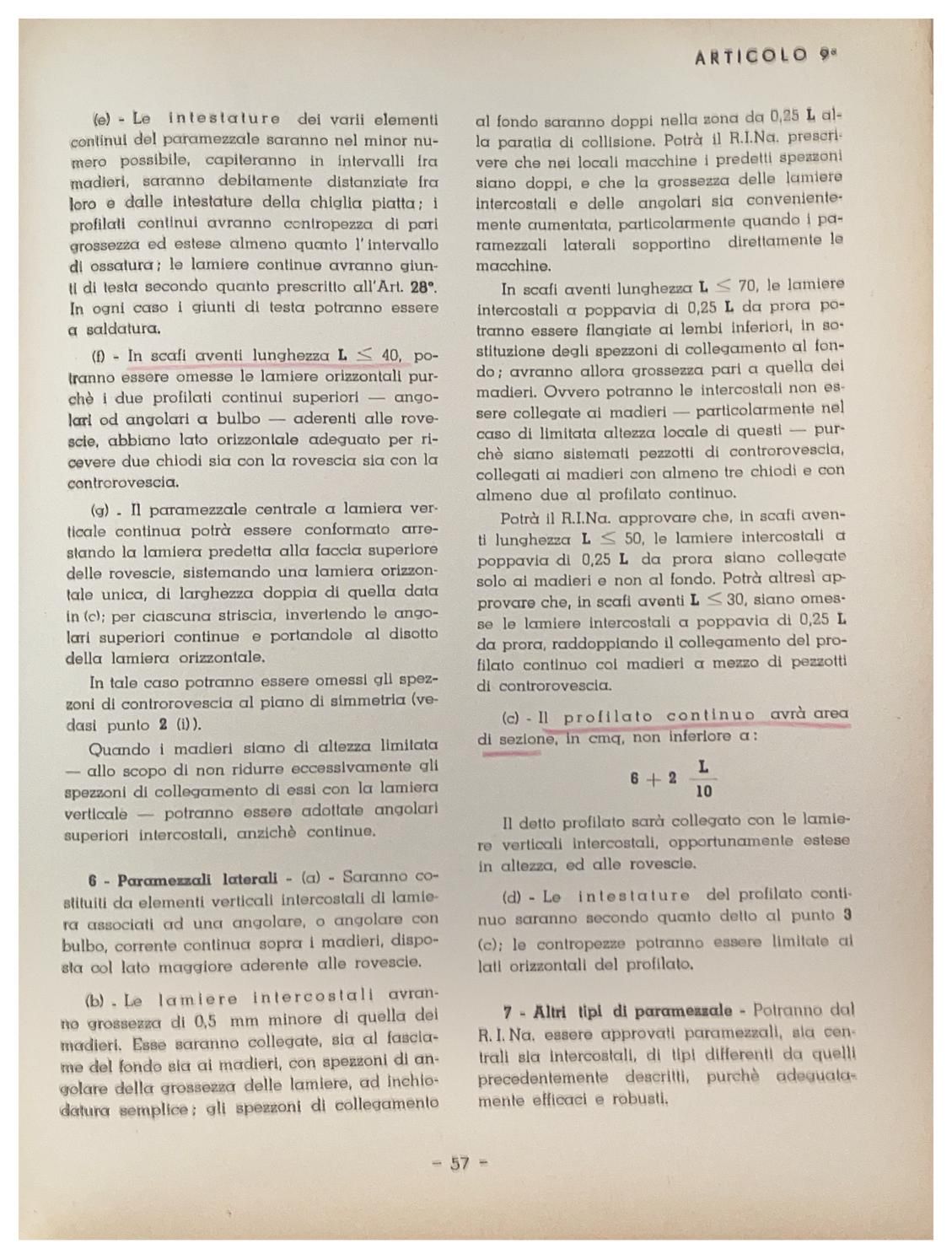 Il seguente volume è un regolamento per la costruzione degli scafi in acciaio di navi destinate a navigazione marittima. Il volume non è conservato in condizioni ottimali: le pagine sono integre ma presentano alcuni segni di sottolineatura e appunti in alcuni punti.